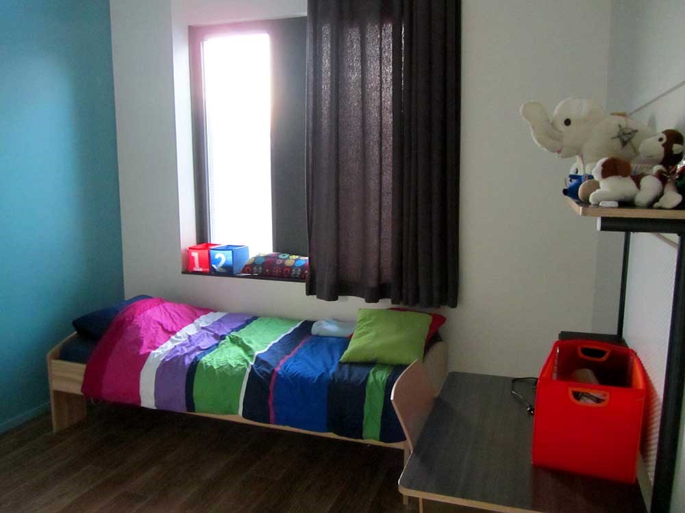 Je woont hier samen met 8 andere jongeren tussen de 9 en 17 jaar. We hebben twee woonkamers en twee keukens. Boven zijn er zes slaapkamers en beneden drie slaapkamers met een badkamer.