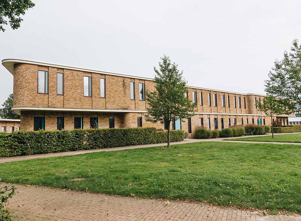 Aan de voorzijde van de groep is een omheinde tuin, waar we in de zomer vaak gezellig met zijn allen zitten. Aan de achterkant is er een gezamenlijk plein waar je kunt basketballen op een basketbalveld of voetballen in een pannakooi.