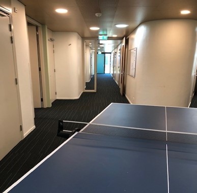 Alle slaapkamers bevinden zich, verdeeld over twee gangen, op de begane grond en zijn voorzien van een bed, wasbak, kledingkast en bureau. Op de begane grond zit ook een doucheruimte, badkamer met bad en toilet en een apart toilet. Onze locatie heeft ook twee appartementen met een eigen doucheruimte en toilet.